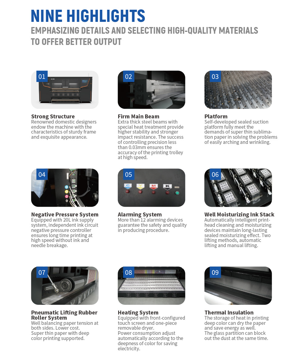 | Standard Configuration | Intelligent Drying System; ntegrated three-colour Light Alarming System; Continuous lnk Supply System;10000-meter Take-up System; Negative Pressure System: Magnetic Levitation Technolog |