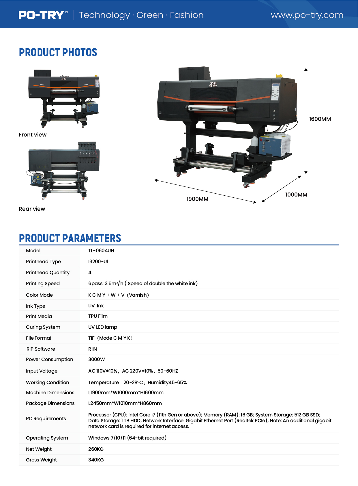 | Printing Speed | 6pass: 3.5m²/h ( Speed of double the white ink) |