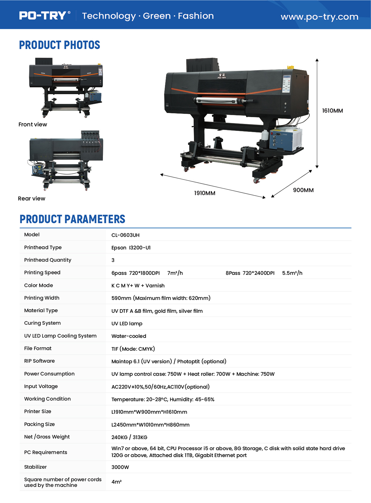 | Power Consumption | UV lamp control case: 750W + Heat roller: 700W + Machine: 750W |