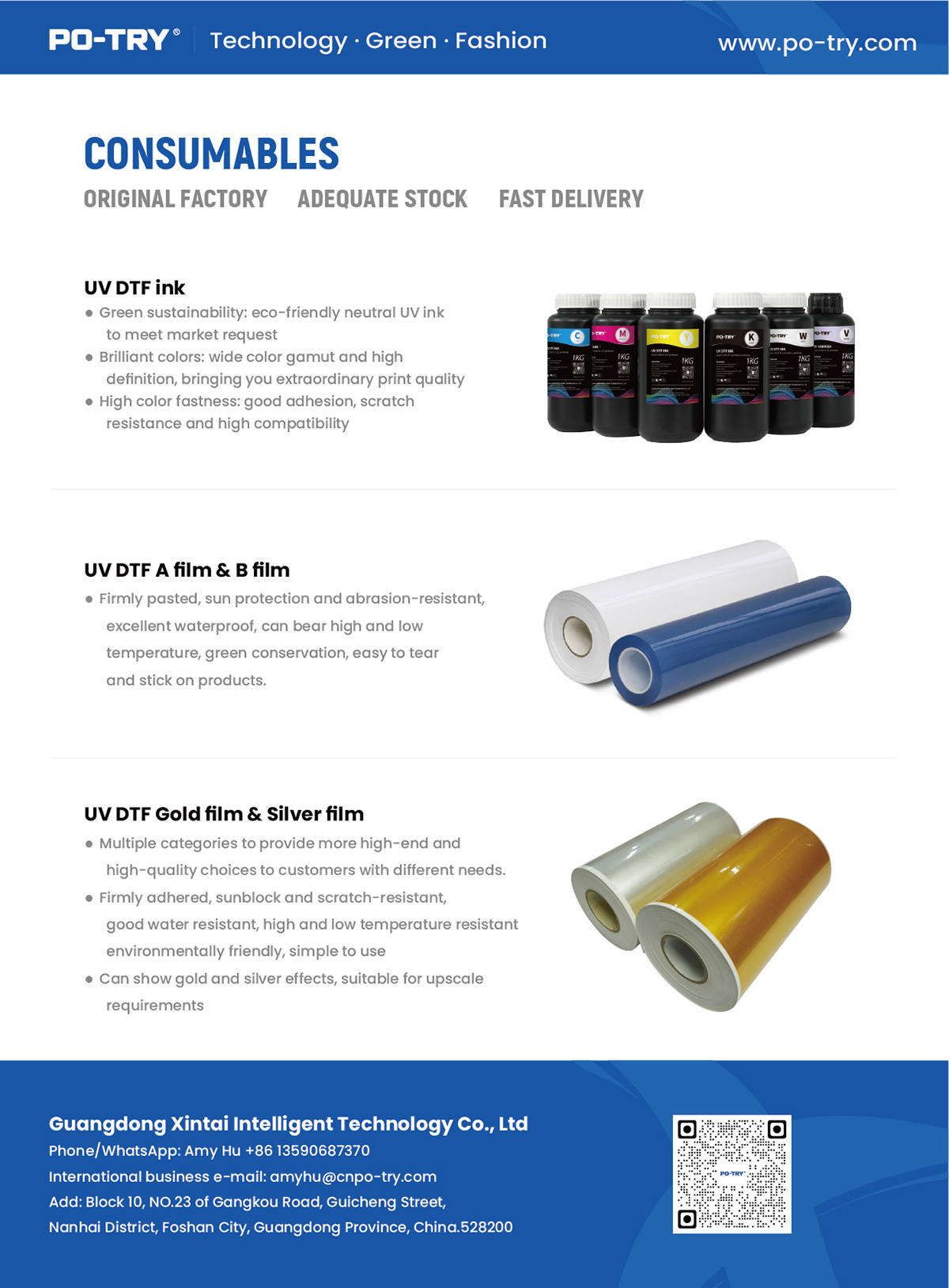 | Material Type | UV DTF A &B film, gold film, silver film |